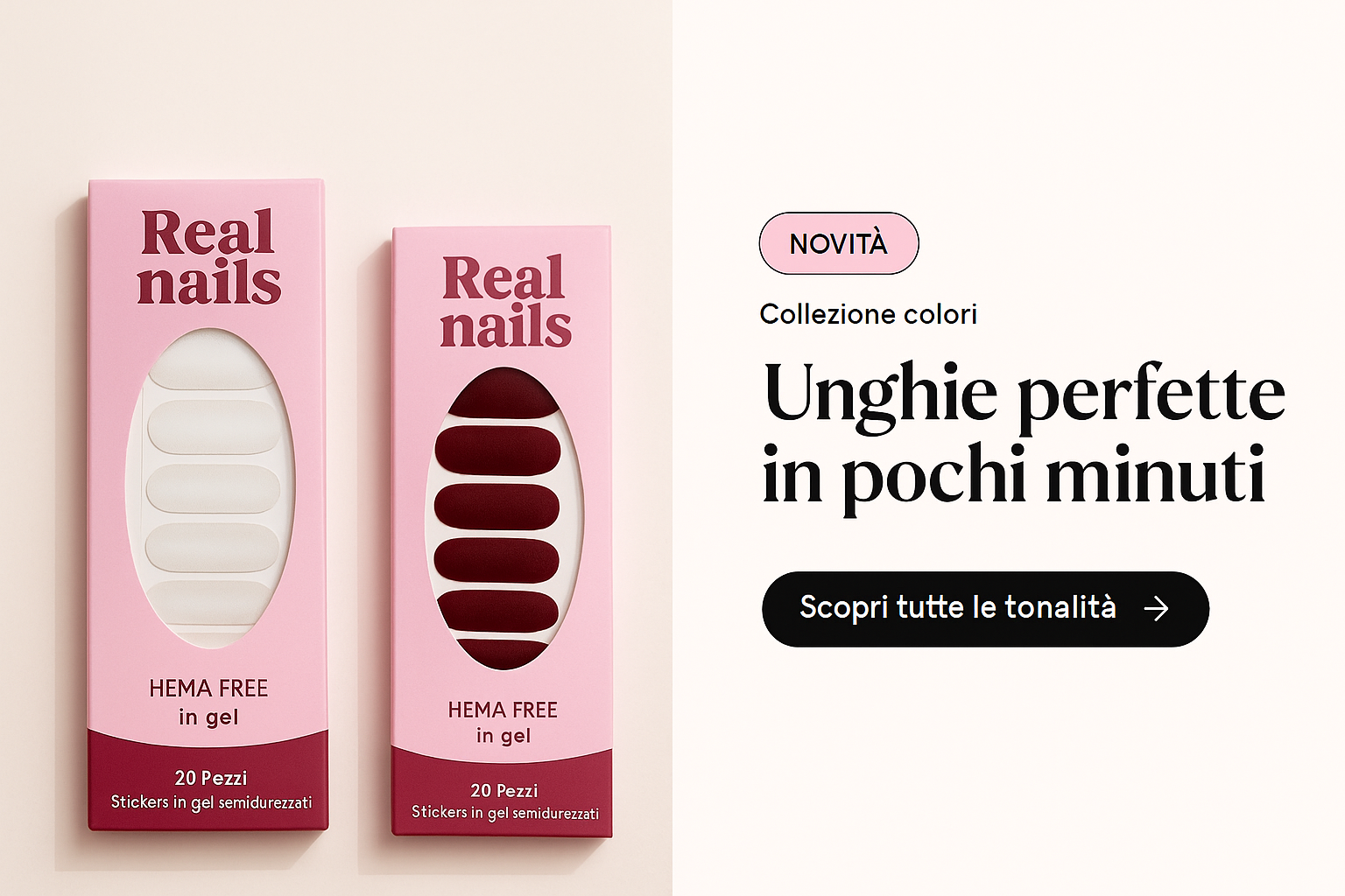 Le Real Nails sono pensate per migliorare l’aspetto delle tue unghie naturali, ma non ne aumentano la lunghezza. Se desideri un effetto di allungamento, puoi applicarle sopra un’estensione o un’allungamento in gel per un look più lungo.