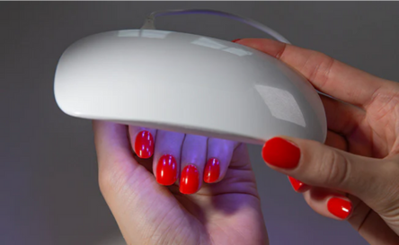 Collega la lampada UV LED a una fonte di alimentazione. Posiziona indice, medio, anulare e mignolo sotto la lampada UV LED e accendila. Attendi 1 minuto; la lampada si spegnerà automaticamente. Indurisci i pollici separatamente.